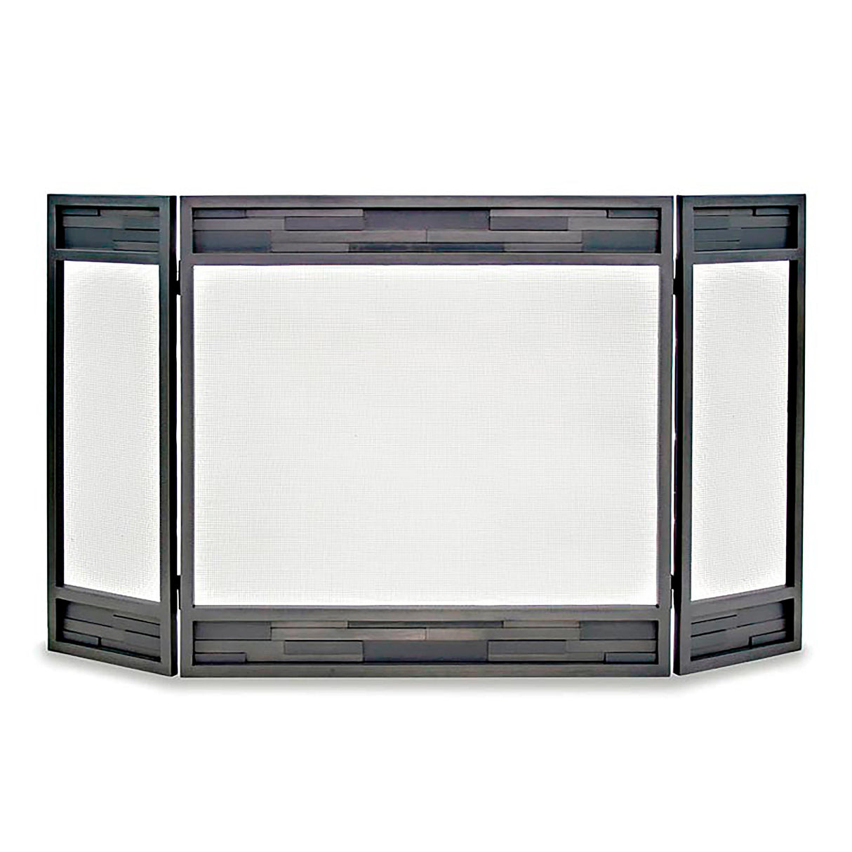 Add bold style and practical protection to your hearth with our Lanier Tri Panel Geometric Fireplace Screen. Featuring a clean, contemporary design with stacked block accents across the top and bottom, this screen offers a modern update to traditional fireplace decor.