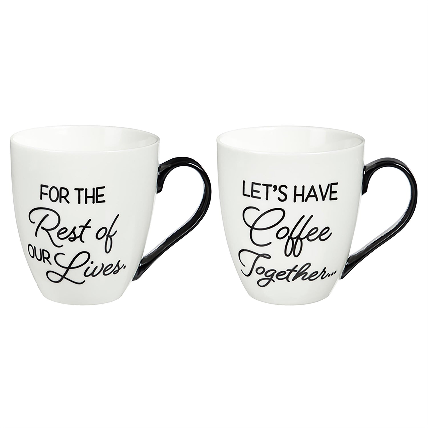 A great wedding, anniversary, or Valentine's gift, this set comes with two mugs that read "Let's have coffee together" & "for the rest of our lives." The perfect day starter for loving coffee drinkers, both cups can hold up to 17 ounces of hot or cold liquid. Crafted from heat-resistant, durable ceramic with a sturdy and comfortable handle, they are also microwave and top-rack dishwasher safe. The set comes packaged in a coordinating grey gingham gift box, making gifting easy.