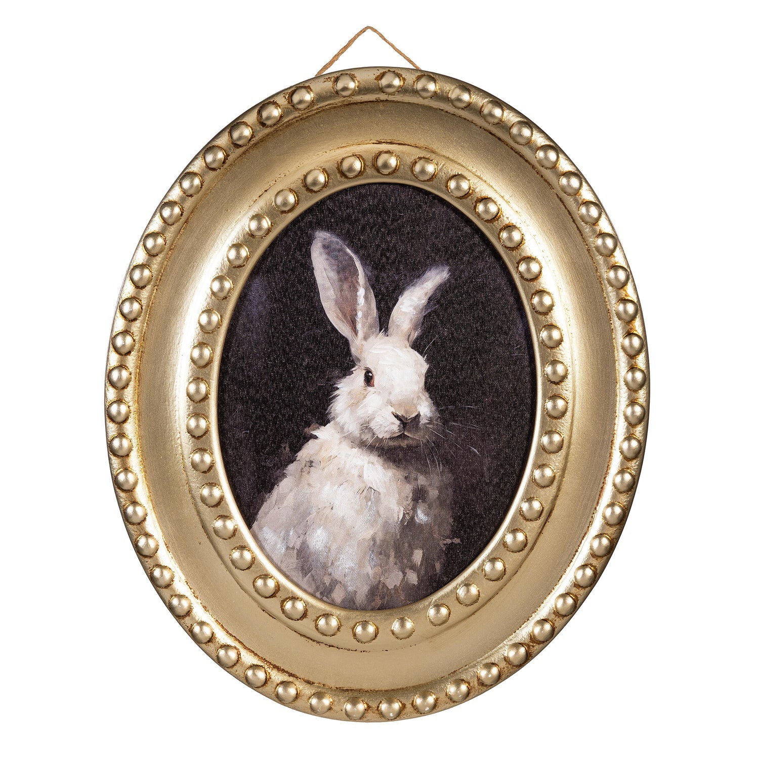 Petal & Plow Indoor Wall Decor, Wood, Rabbit Portrait in Round Gold Decorative Frame, 16" L x 19" H