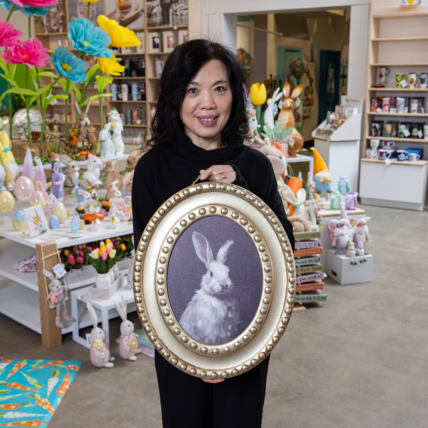 - Bring a touch of whimsy and charm to any space with this delightful rabbit portrait.