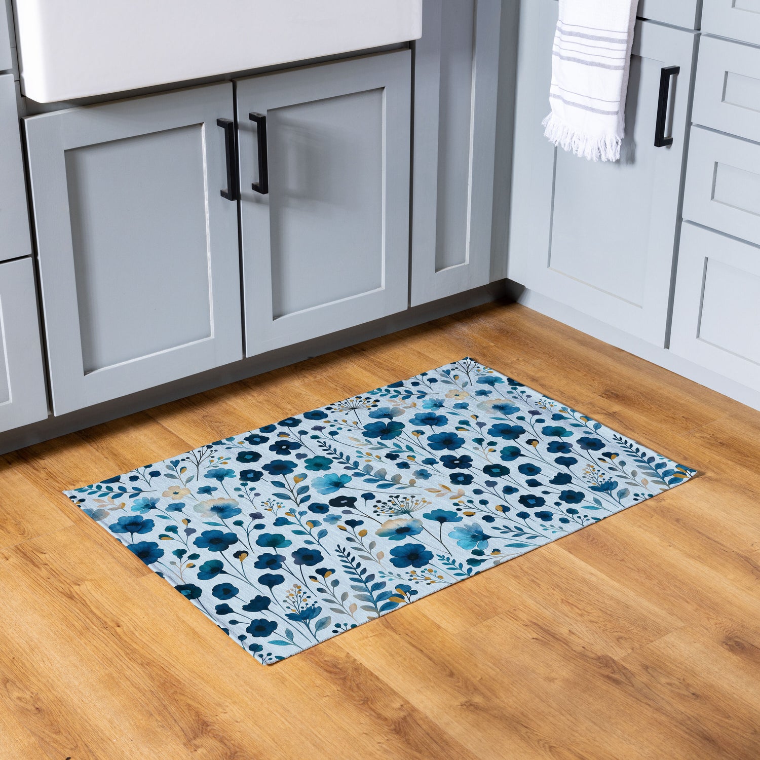VivaStyle Gilded Meadow Washable Mat Blue Wildflowers, 24"Lx36"H