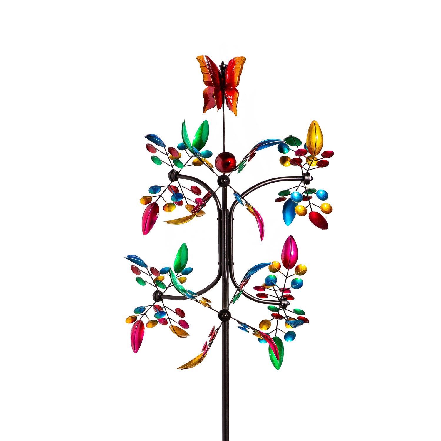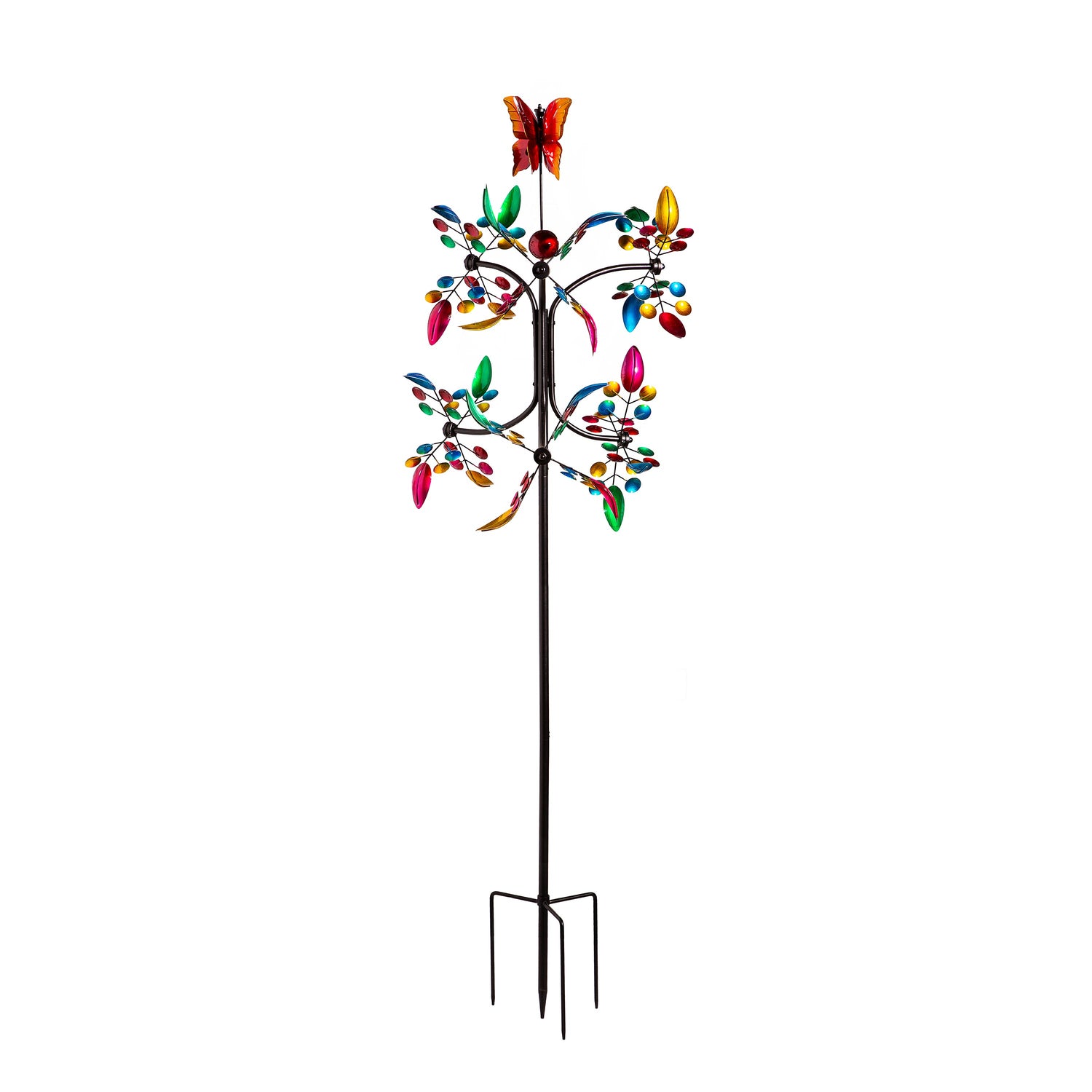 This Wind Spinner is perfect for adding color and whimsy to any outdoor space, garden, landscaping and more. The spinner is designed for movement when the wind blows; sit back and watch as the design comes to life in any gentle breeze. Its beautiful tower design with butterfly and leaf accents is an easy way to bring charm to any home. Made of durable, weather-resistant material, this outdoor accent is made to last year after year.