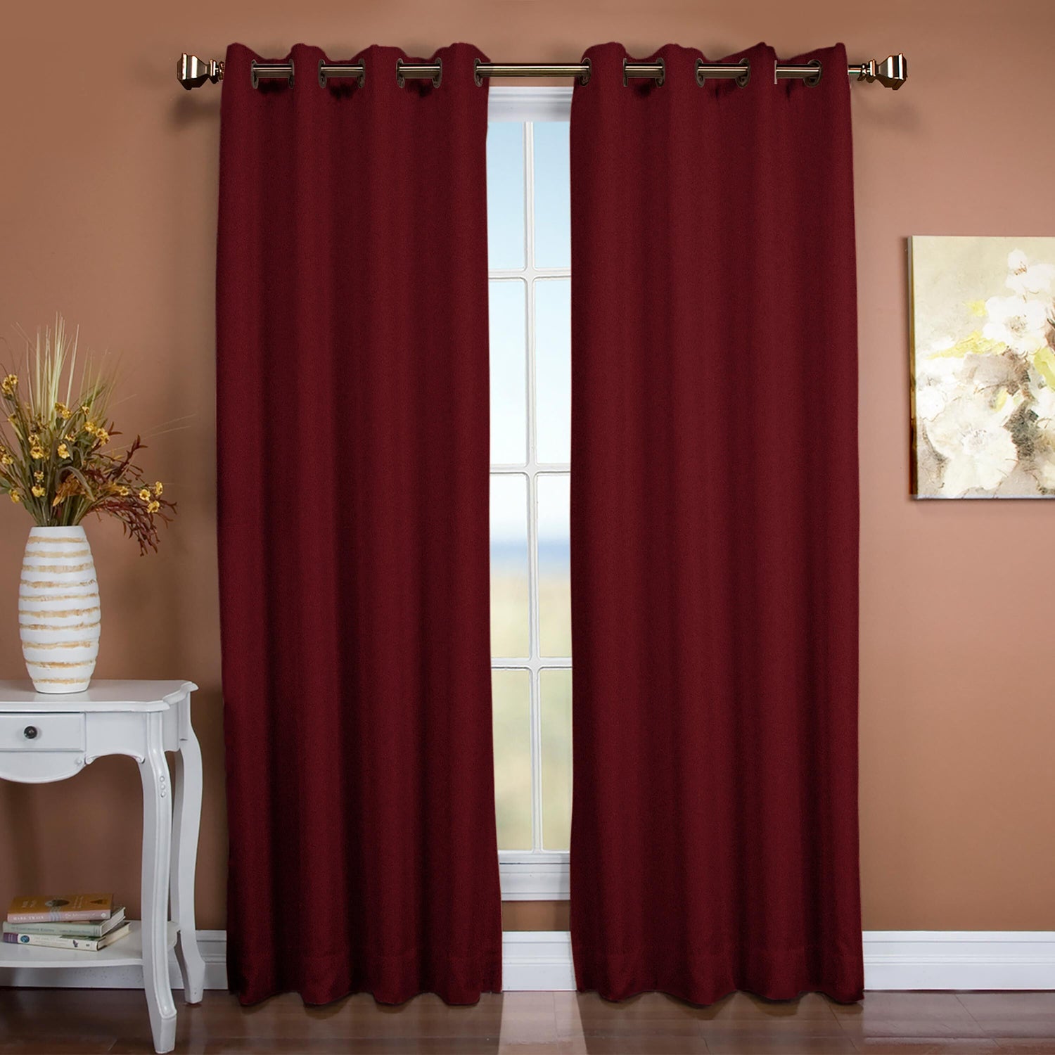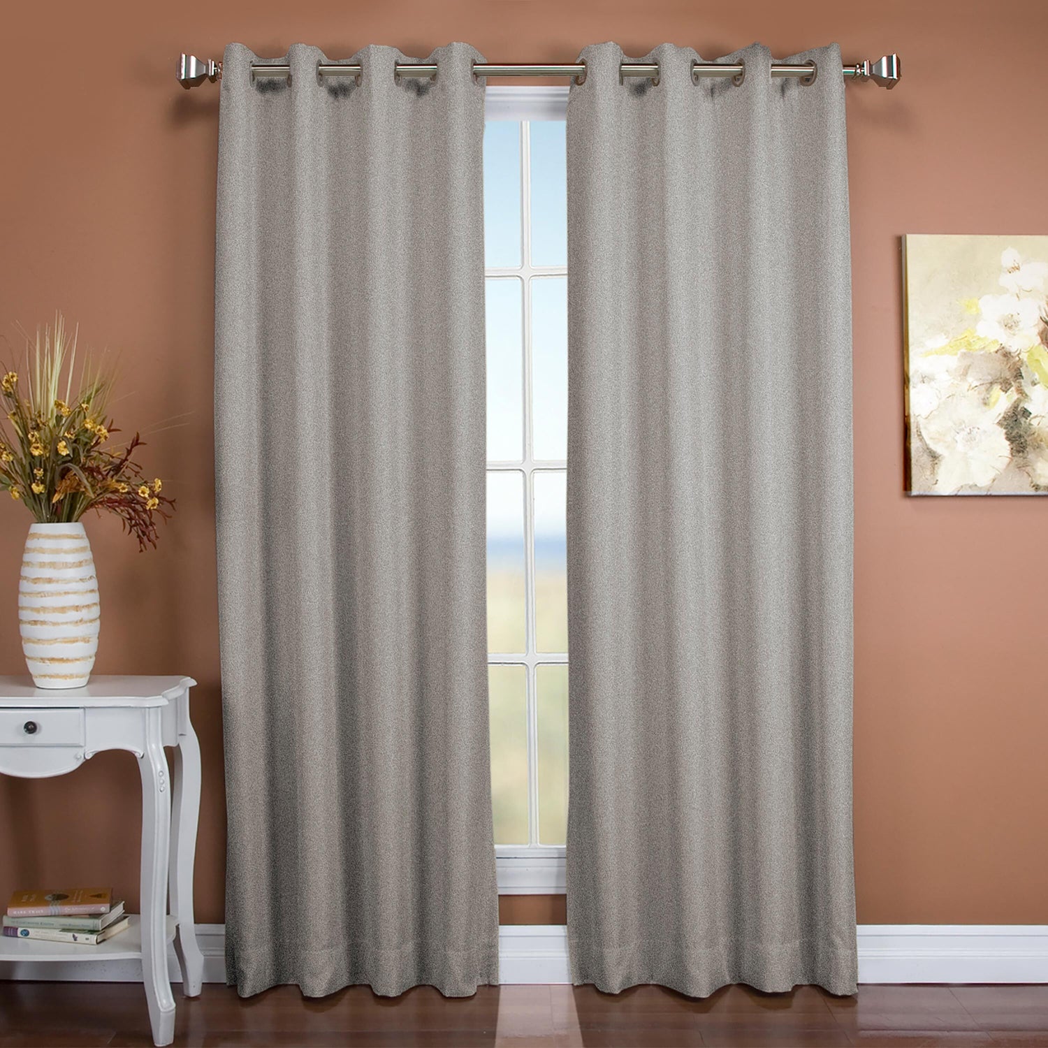 Nicely finished, these Madison Double Blackout Curtains have side hems and a 4" bottom hem with weighted corners. Smooth-glide grommets are 2¼" dia. with 1½" opening.