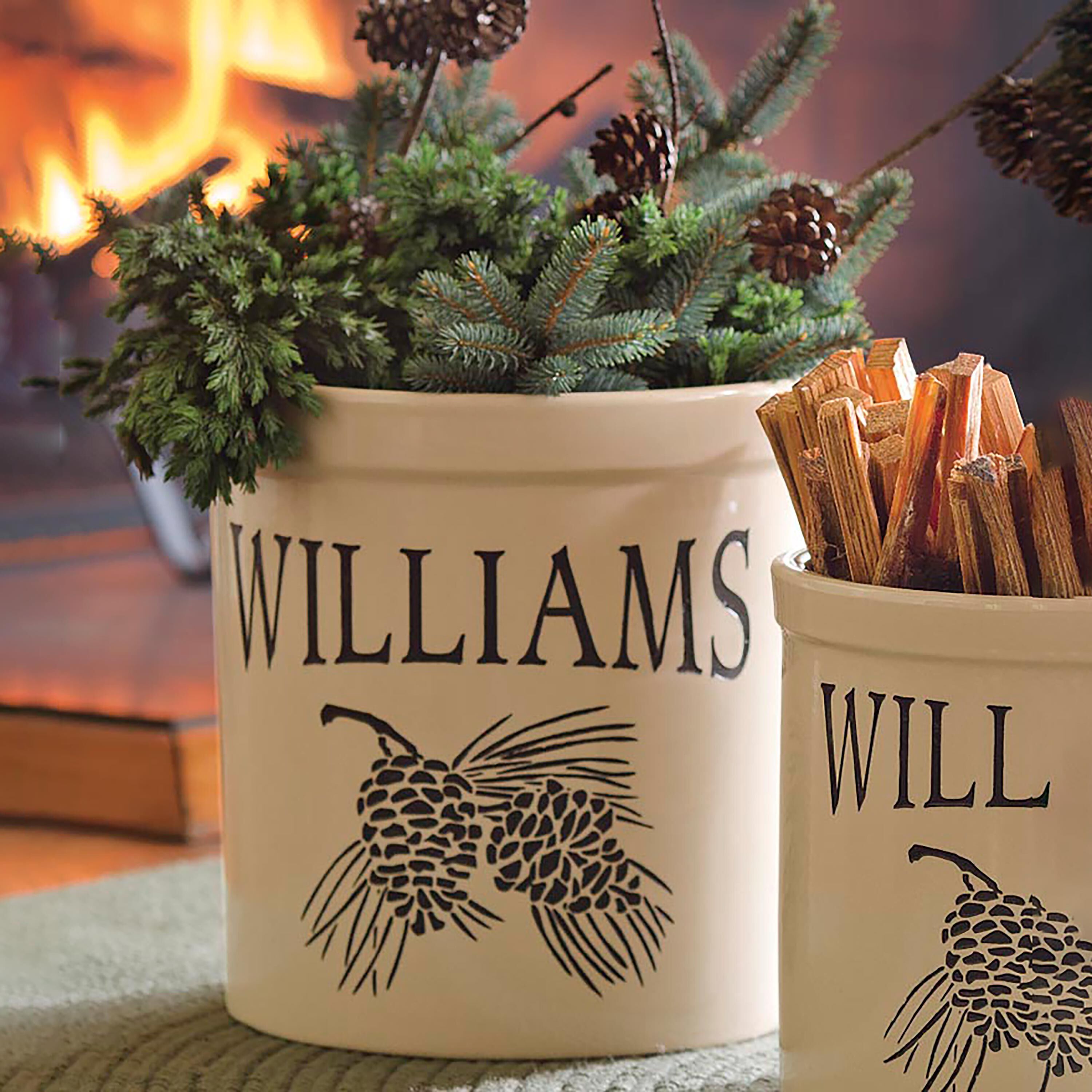 Our Handcrafted USA-Made Double Pinecone Personalized 2 Gallon Crock is an everyday, heirloom-quality reminder of life's special moments.