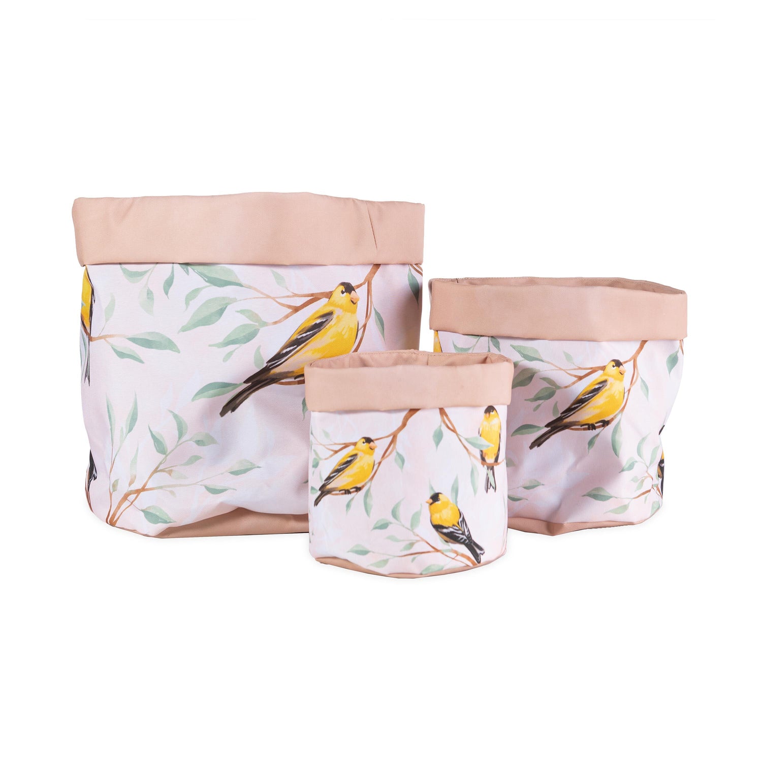 Lined Canvas Planters with Bird Designs, Set of 3