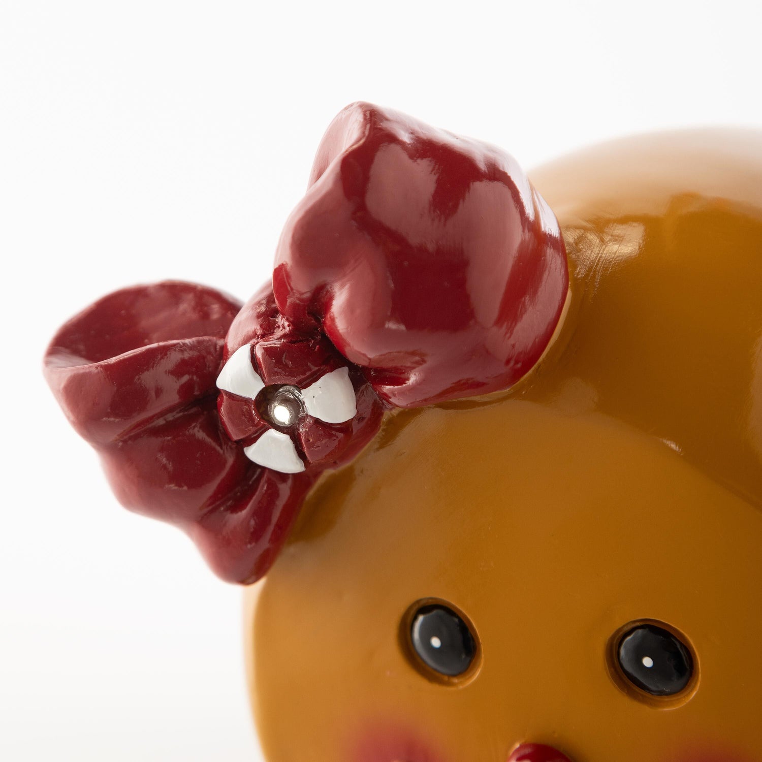 Brighten any space with this sweet little accent that has great hand-painted details and embedded lights to make it shine. Nicely finished from front to back, our Gingerbread Girl is all dressed up in a colorful dress, scarf and bow with pretty candy embellishments.