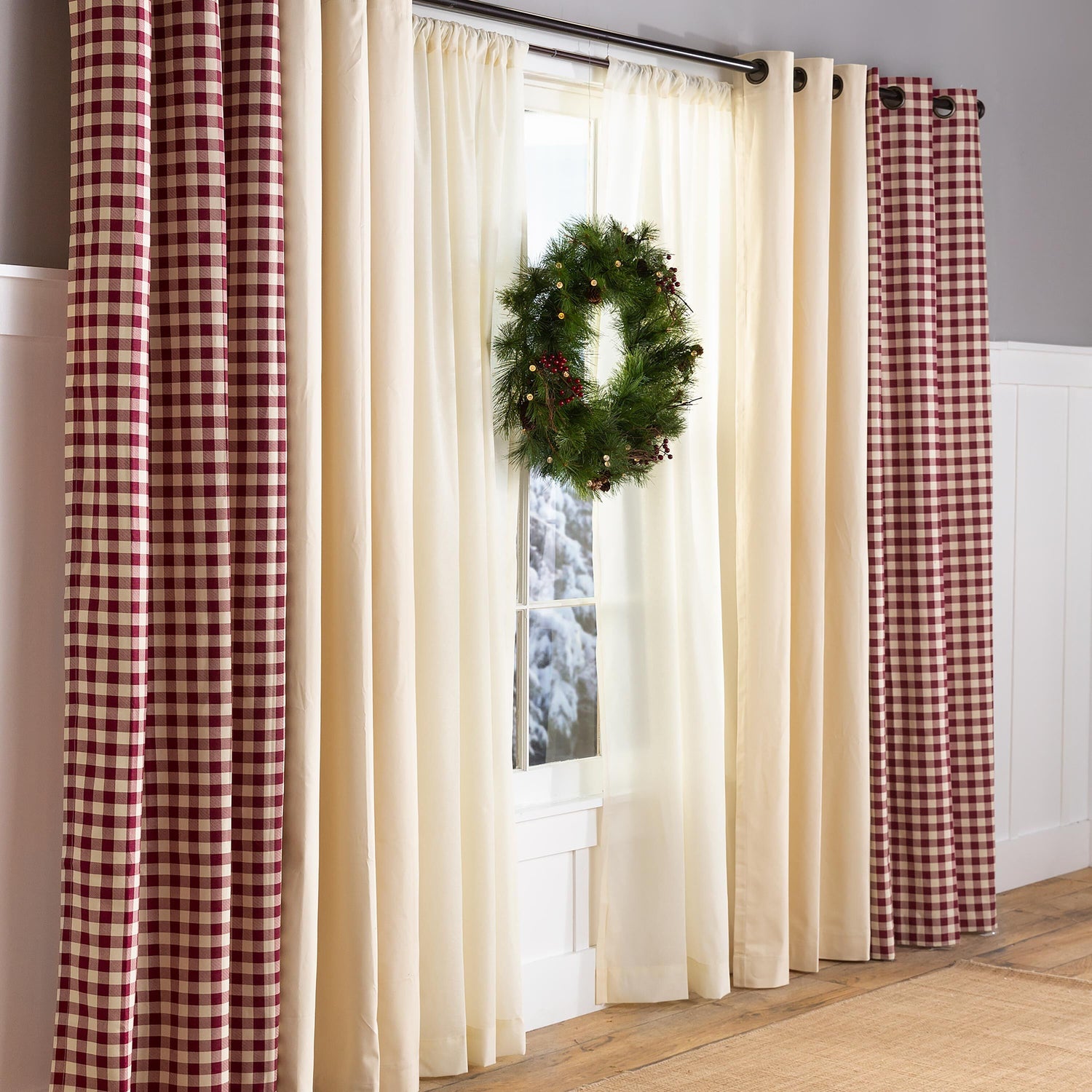 Truly outdoor safe, our Wreath features assorted faux greens, real pine cones and twigs, plus faux red berries for amazing texture and style.