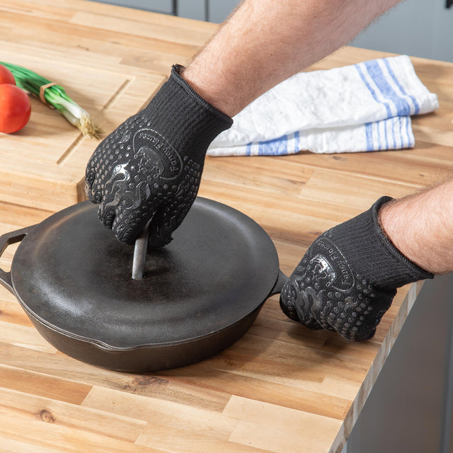 Barbecue, cook, tend to your fire and handle hot objects safely with this heavy-duty Pair of Heat-Resistant BBQ Gloves.