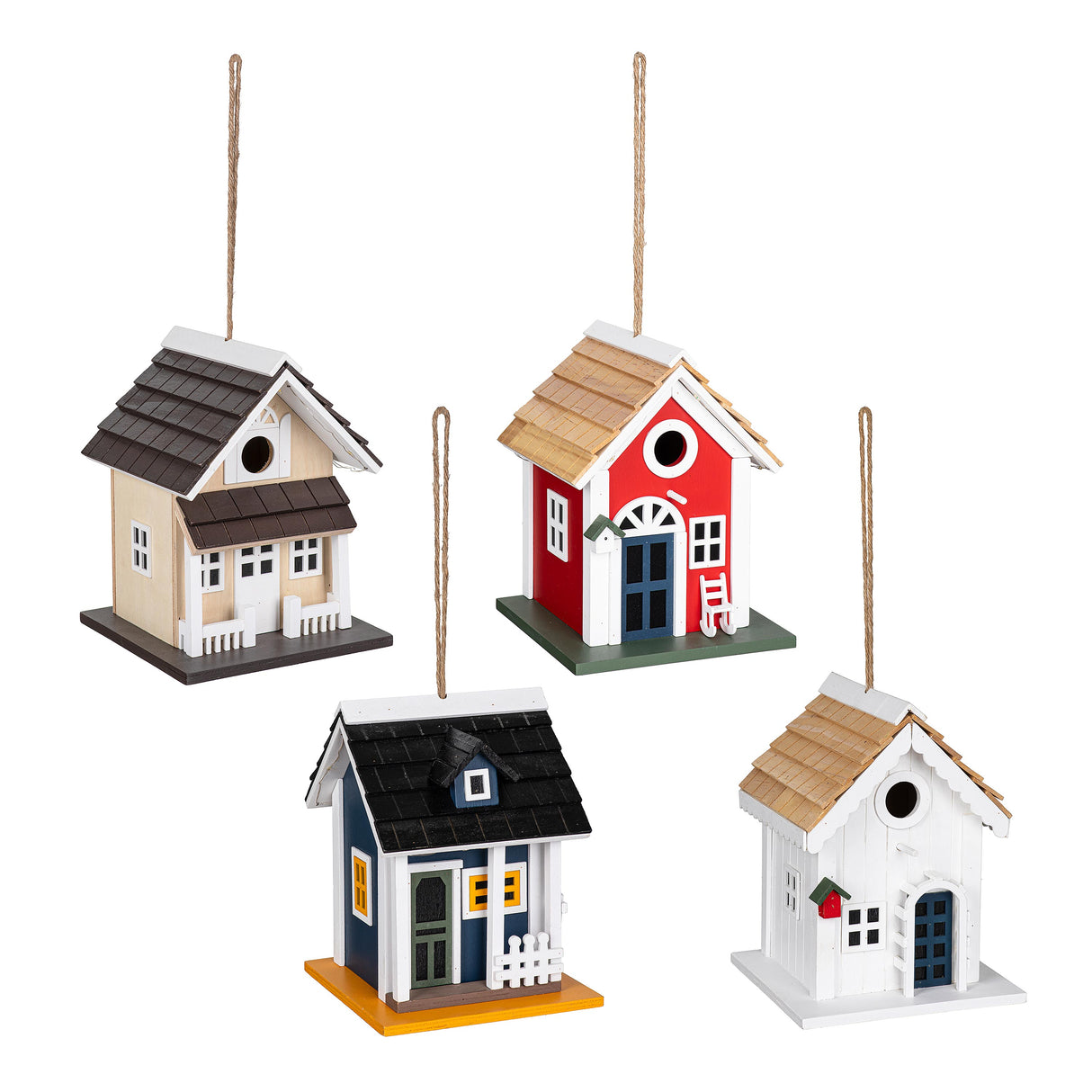 Give feathered friends a unique outdoor piece that provides shelter. This bird house offers a stylish and functional addition to any garden or outdoor space. With an adorable nesting hideaway design, this birdhouse is a whimsical accent to the home. Hang this house in any outdoor space to beckon winged visitors season after season. Quality craftsmanship and durable materials ensure this birdhouse is weather-resistant and outdoor safe.