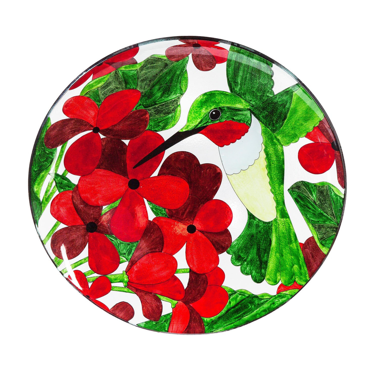 Pollinator Garden Birdbath, Glass bird bath with Stand, Hummingbird, 16"