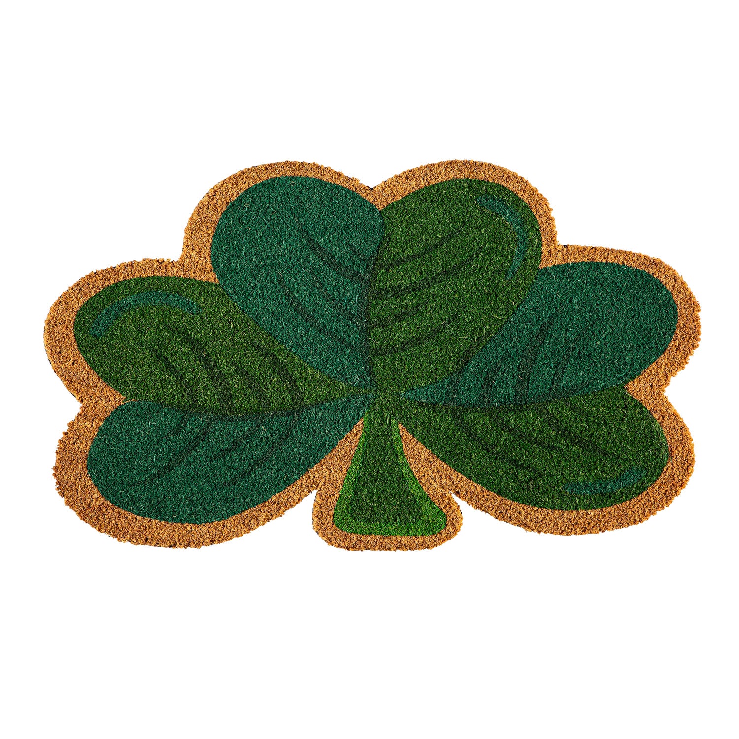 Offer guests a playful greeting this spring with this coir mat. Perfect for adding a bit of whimsy to any entryway, this welcoming design is shaped like a clover. Crafted from coco husk fiber, the eye-catching mat is natural and eco-friendly. Ideal for high-traffic areas, the mat traps dirt and debris to prevent messes from being tracked into homes. Designs are printed directly on the mats with fade-resistant dyes. Since the mat is crafted from natural coir, some shedding is to be expected. Shake off excess fibers or use a soft brush to gently sweep.
