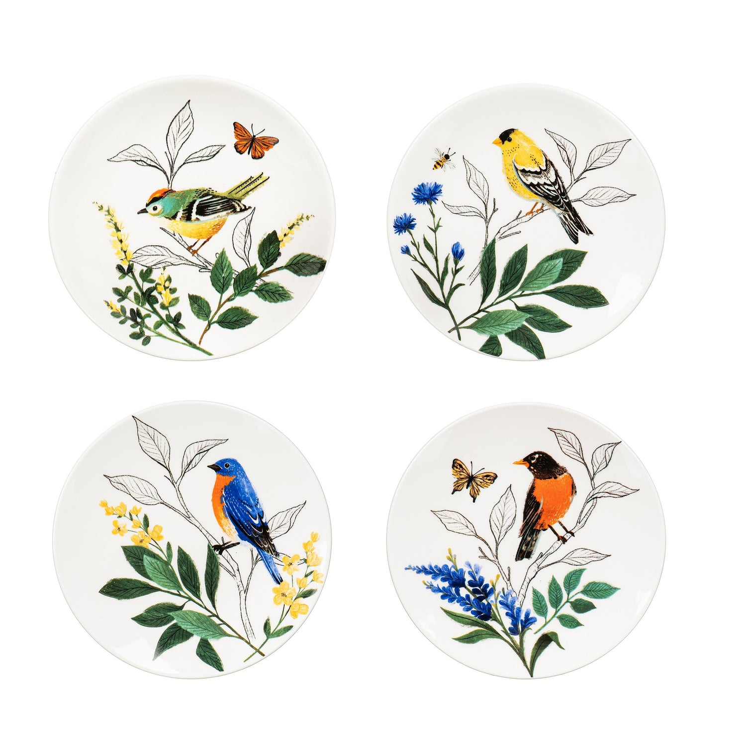 What She Shed Plates Ceramic Appetizer Plates Song Bird, 6", Set of 4, Gift Box