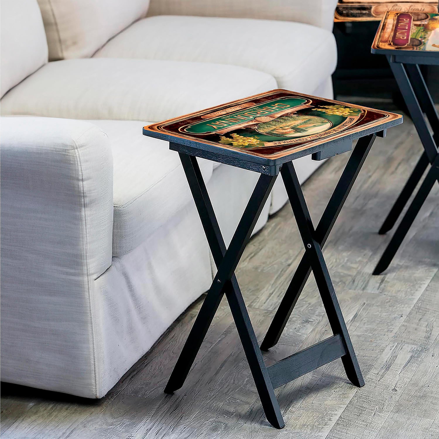 Discover the convenience of added dining areas with our Set of four TV Trays. Perfect for small gatherings or cozy nights in, these trays bring the charm of a vineyard to your home, allowing you to dine with ease and style to living room, den, man cave and kitchen.