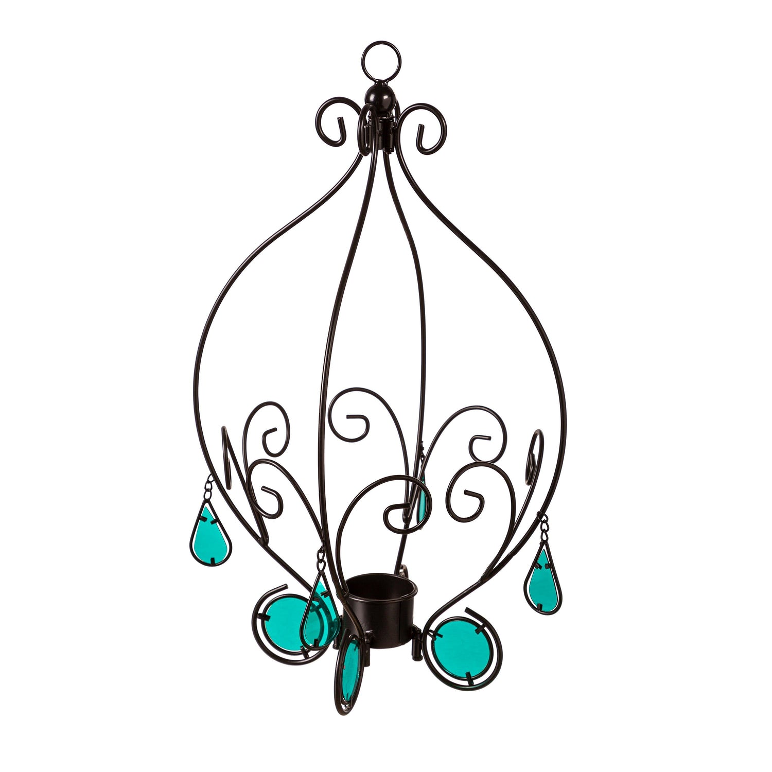 Metal Gazing Ball Hanging Holder with Blue Glass Tear Drops