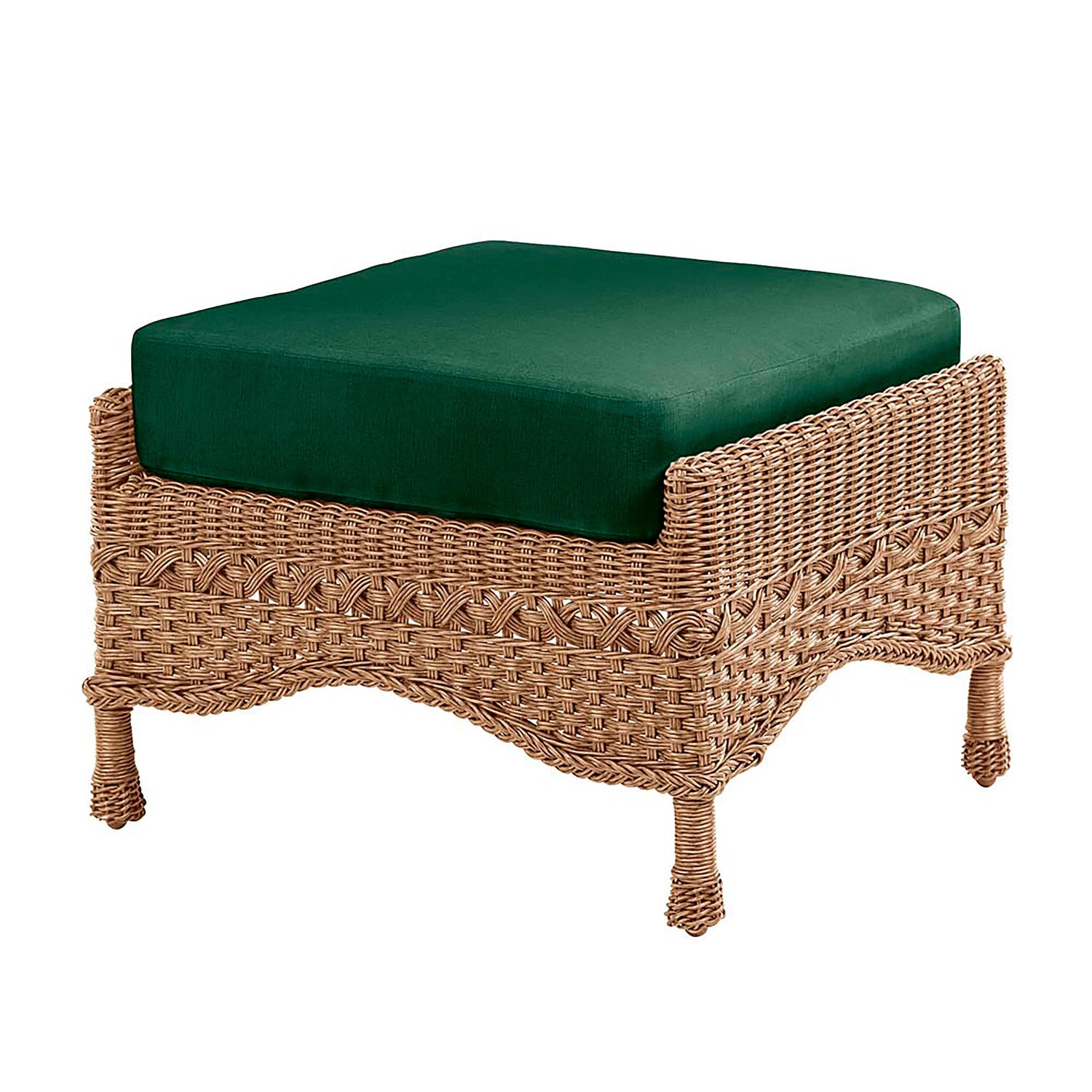 Handsome striations give this luxury wicker a textured, natural look. The Ottoman features braided trim and a finished design that looks beautiful from the front, back and every angle. Imported.