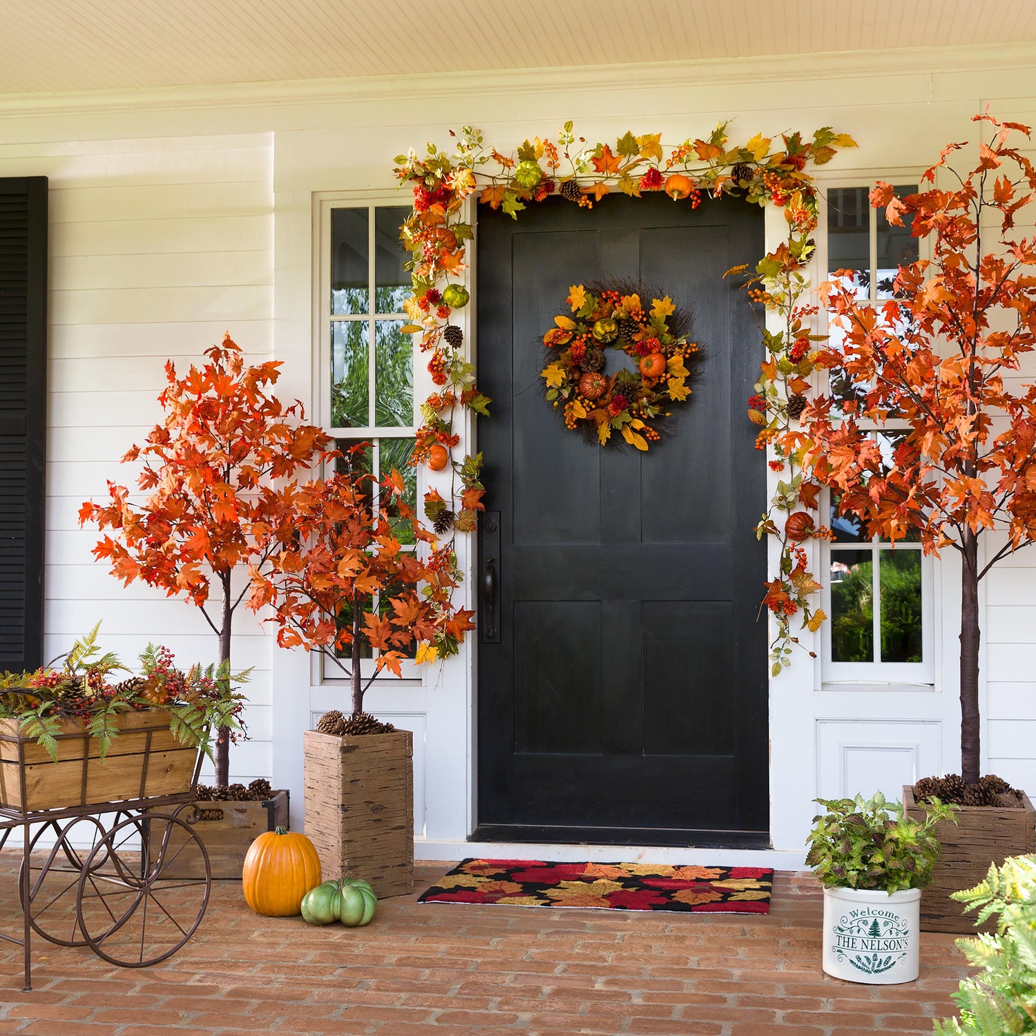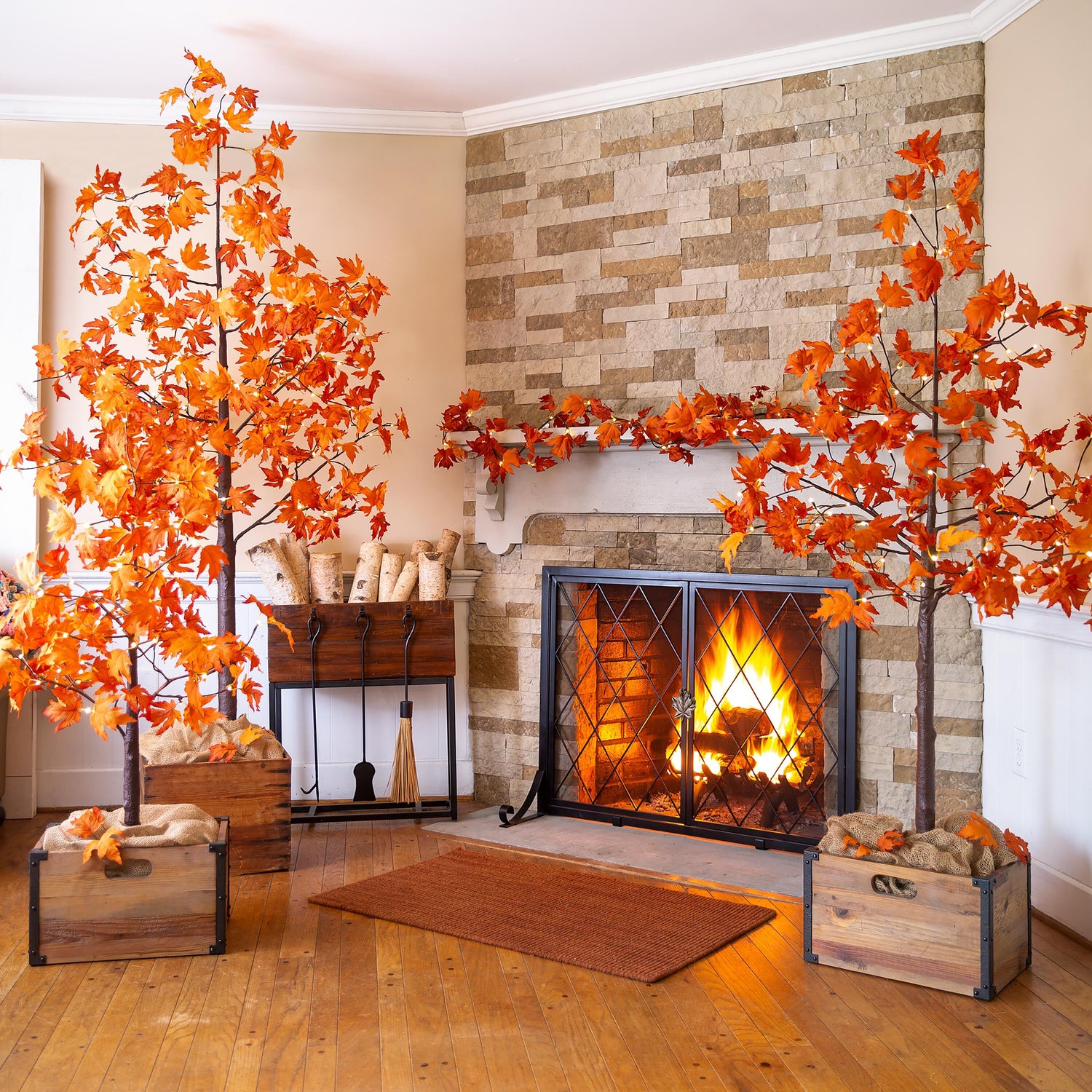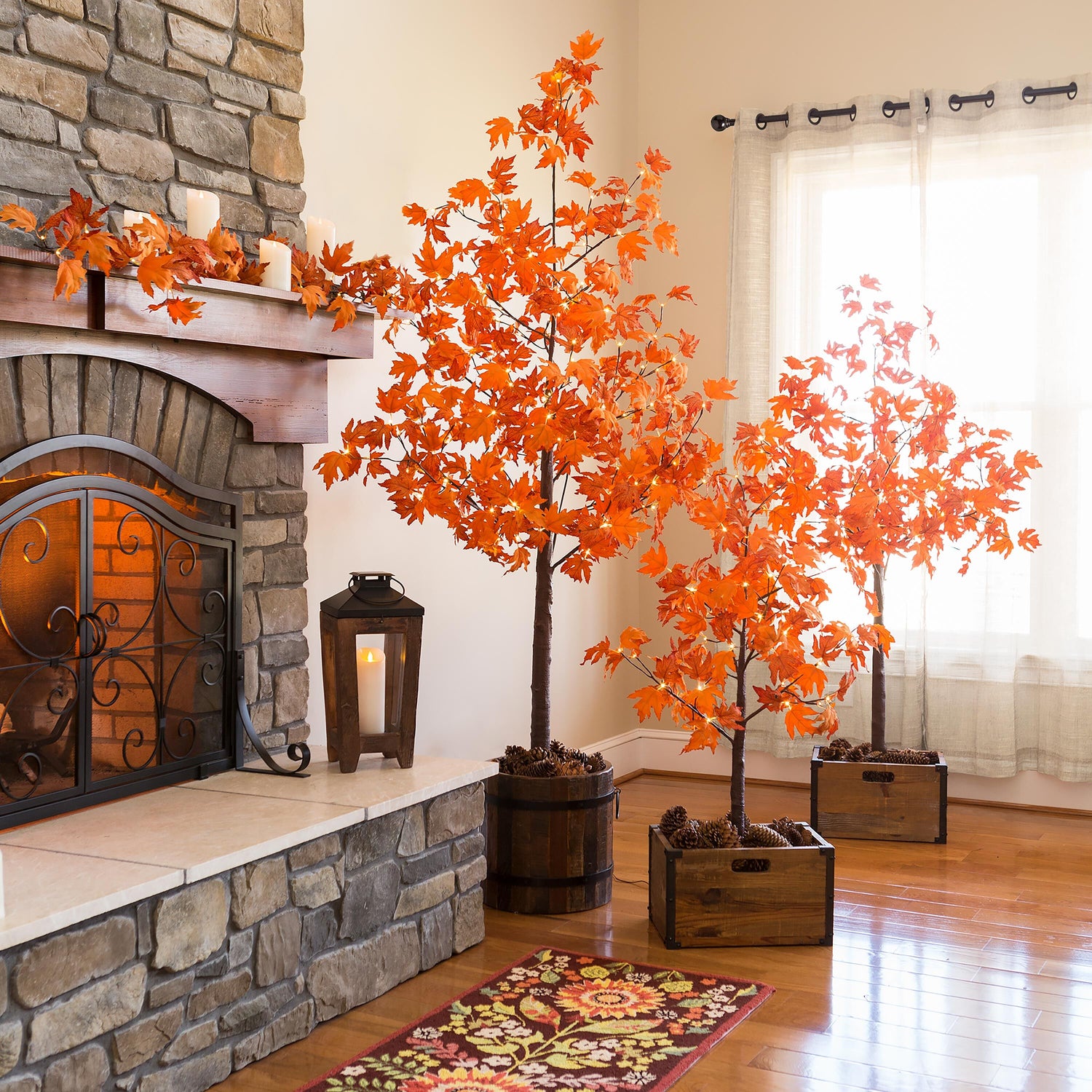 Beautifully formed with a natural silhouette, lifelike branches and detailed orange-red leaves, these trees bring a woodland look inside or outside the home. Warm white LEDs on posable branches let you create a stunning lighted display. These faux maple trees are simply gorgeous!