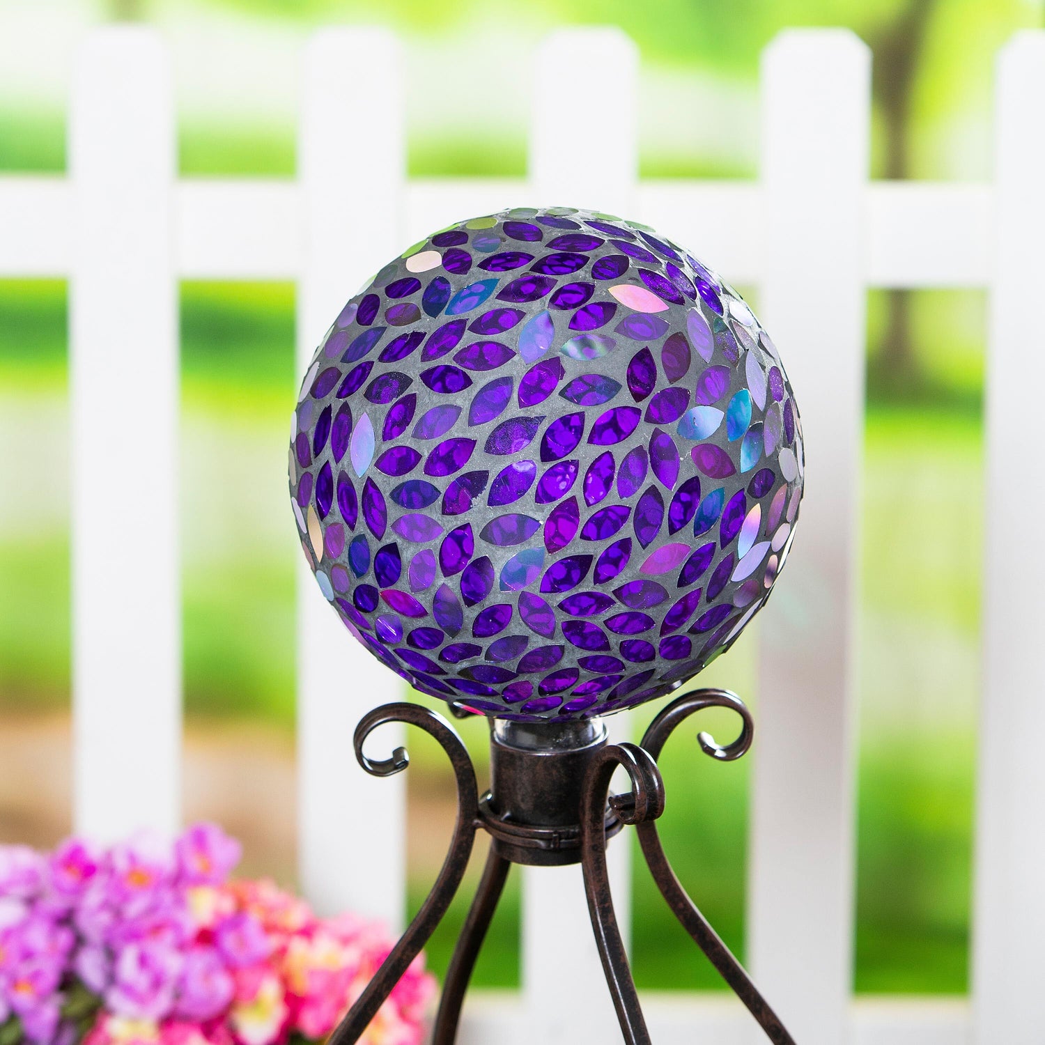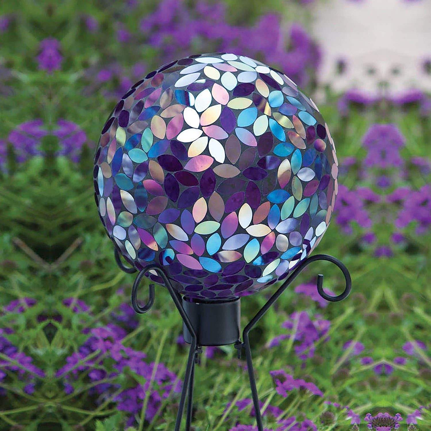 This glass gazing ball is perfect for your home or garden. With its brilliant flower petal mosaic design and colors, this glass gazing ball will surely highlight your garden for years to come. This gazing ball reflects the sun, adding drama and light to wherever you place it. The high quality materials are outdoor safe and weather-resistant. We recommend bringing your gazing ball indoors in colder weather for longevity.