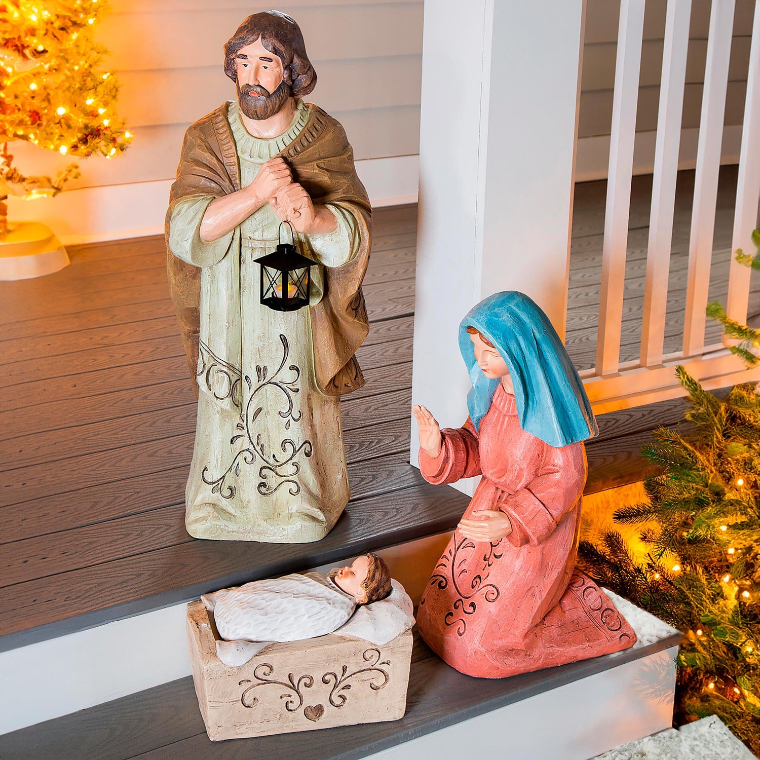 This nativity scene is perfect for your front porch or patio or your garden or yard. With statues as tall as 31"H this set really makes a statement. Made of magnesium oxide, each statue is weather-resistant for outdoor use.