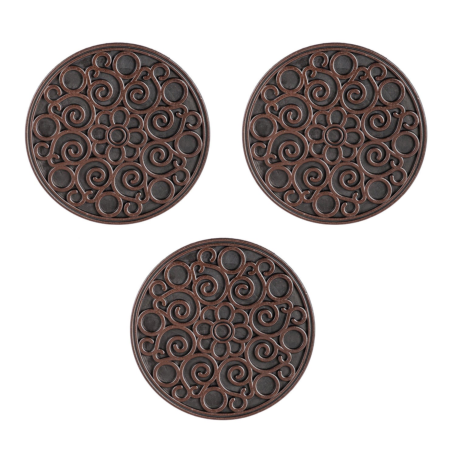 Recycled Rubber Stepping Stones, Set of 3 - Copper Flower Swirl