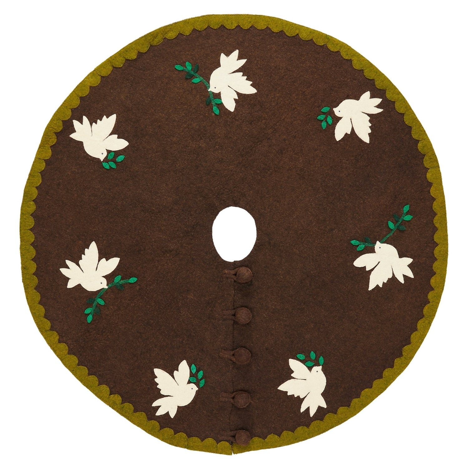 Handmade Doves Brown Christmas Tree Skirt Hand Felted Wool - 60" Arcadia Home