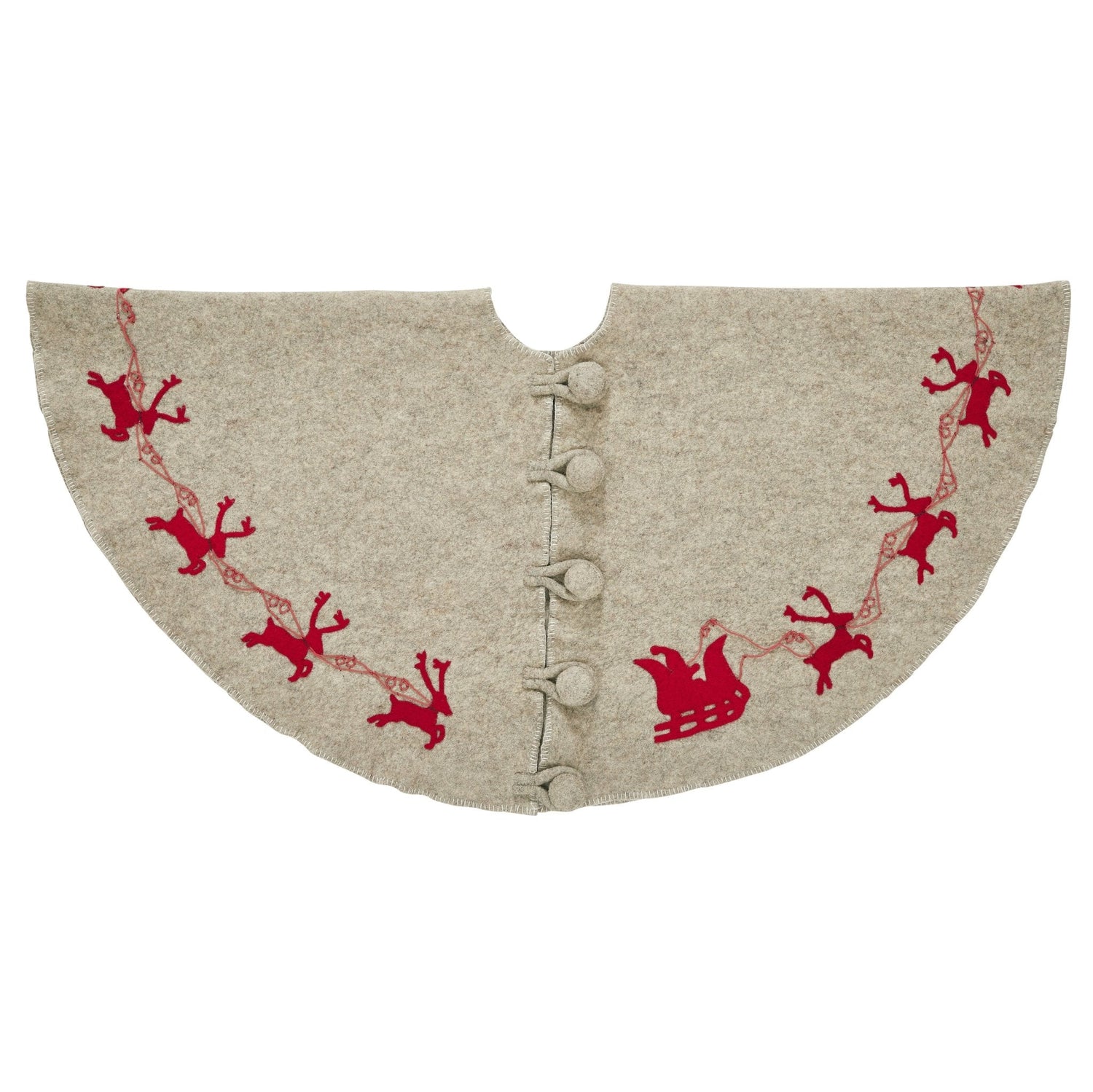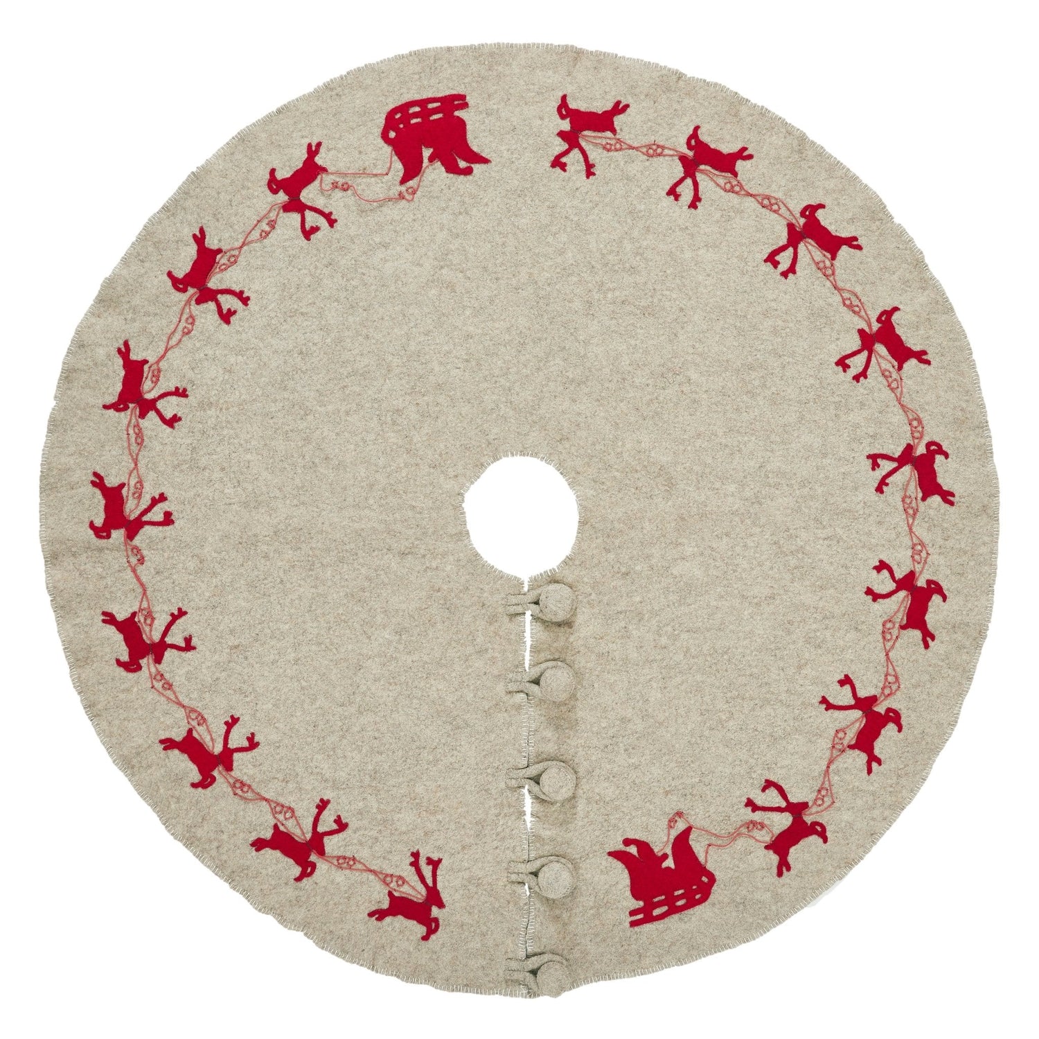 Handmade Reindeer Christmas Tree Skirt- Grey Red Reindeer And Cream Whip Stitch-72" Arcadia Home