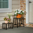 Our indoor and outdoor plant stands feature a versatile, space-saving nesting design, perfect for small spaces. Use them together as a unified plant stand or separately to display multiple indoor plants, allowing you to create a lush, natural decor display.Built with high-quality, heavy-duty metal, each stand in this set is crafted to last. The sturdy steel frame and durable powder-coat finish resist rust, making these plant stands ideal for both indoor and outdoor use in your patio, porch, or garden.Add a touch of rustic, traditional charm to any setting! The tree of life design on these plant stands blend effortlessly with your décor, enhancing spaces from living rooms and walkways to outdoor events and garden displays.