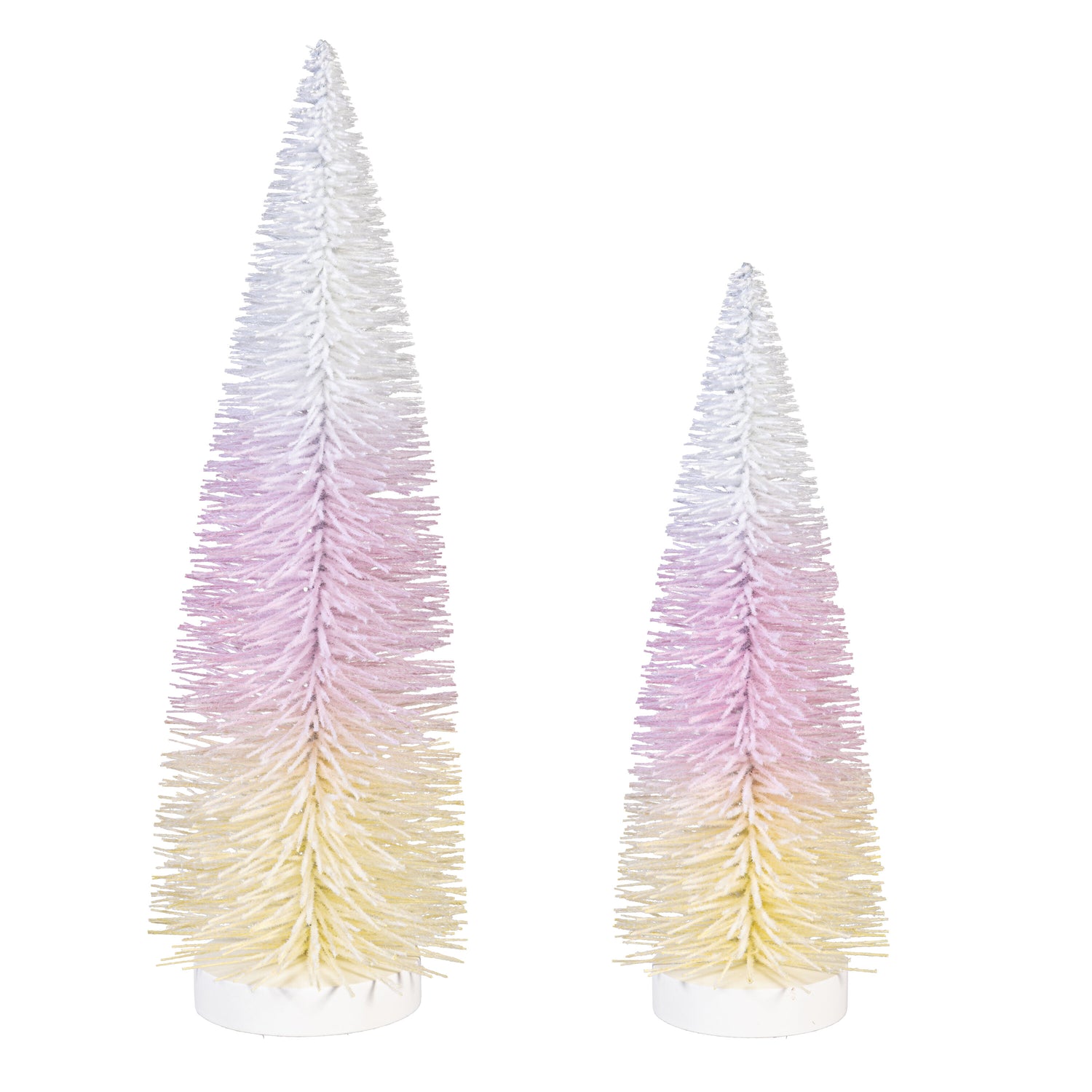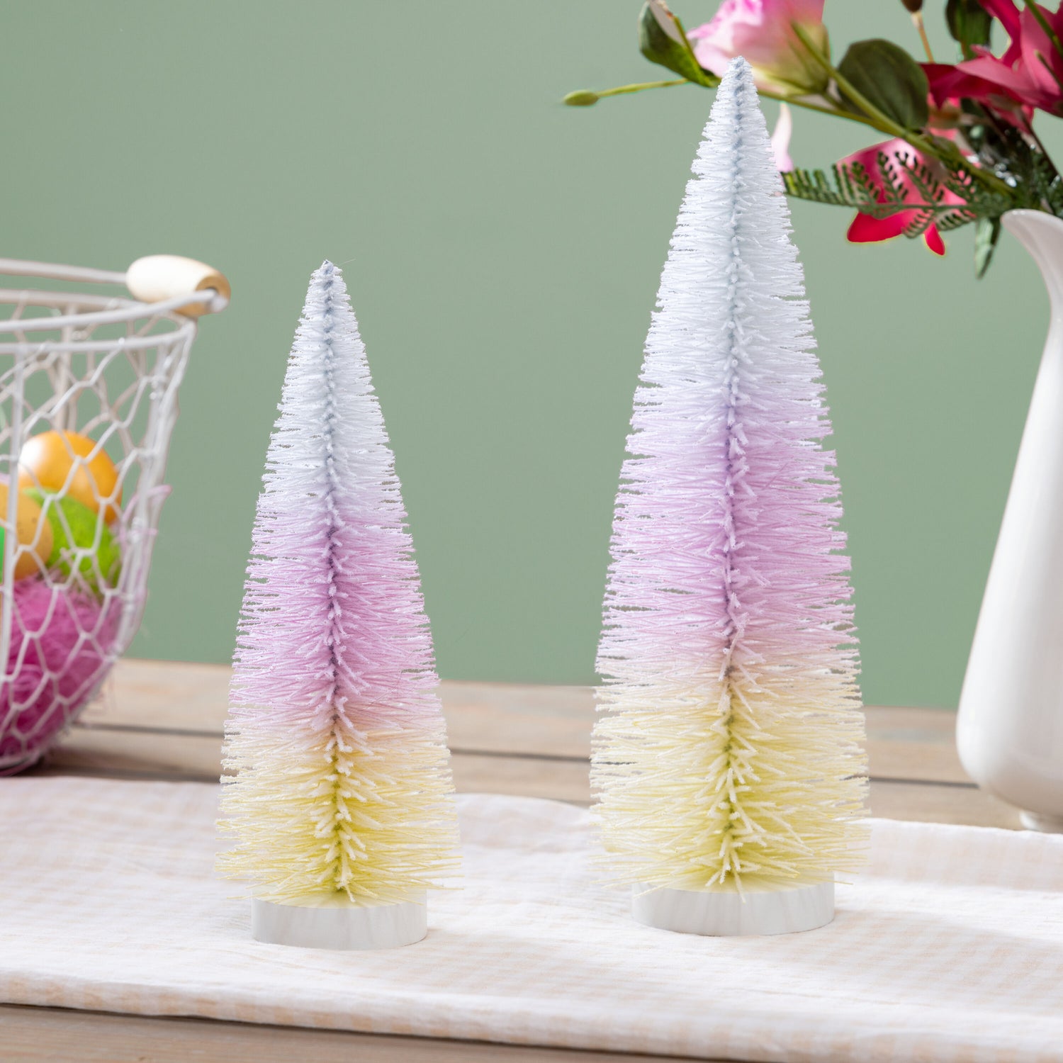 Bunny Blooms Table Decor Plastic Bottle Brush Ombre Tree, Set of 2