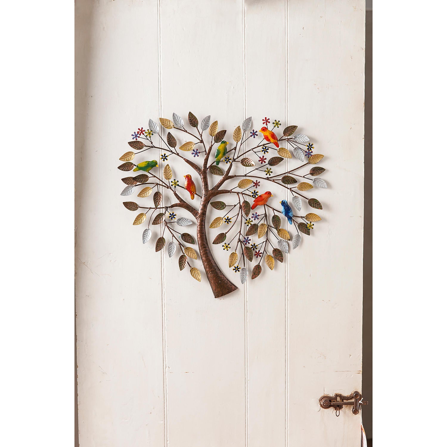 Our Handcrafted Heart Tree Metal Wall Art combines the beauty of nature, the craftsmanship of man and the symbolism of a heart and Tree of Life into one beautiful decoration. The limbs of the tree are adorned with dozens of hand-cut and painted leaves in a variety of metallic hues and provide a resting place for several colorful birds. To add to the beauty of the piece, the tree is formed in the shape of a heart, making it as much a tree of love as of life. For indoor or outdoor display. Wind & Weather Exclusive Design.