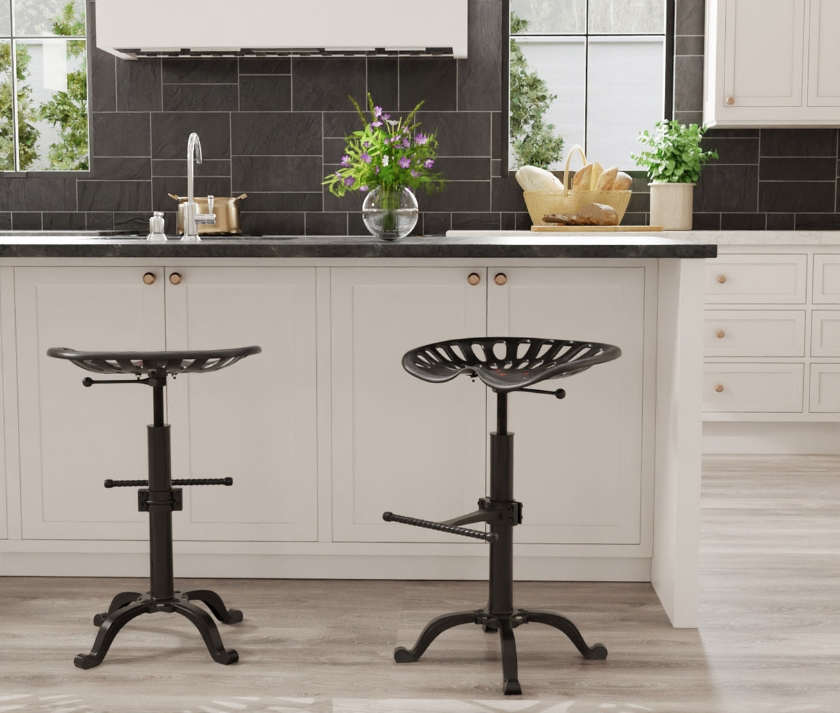 Rustic charm meets utilitarian design in our Industrial Tractor Seat Adjustable Stool, a functional showpiece inspired by vintage farm equipment. With its contoured cast iron seat, robust construction, and working height adjustment lever, this stool brings a bold industrial edge to kitchens, bars, studios, and beyond.